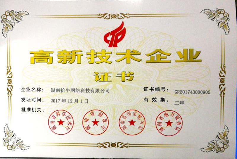 喜訊!拾牛網(wǎng)絡(luò )榮獲得高新技術(shù)企業(yè)認定