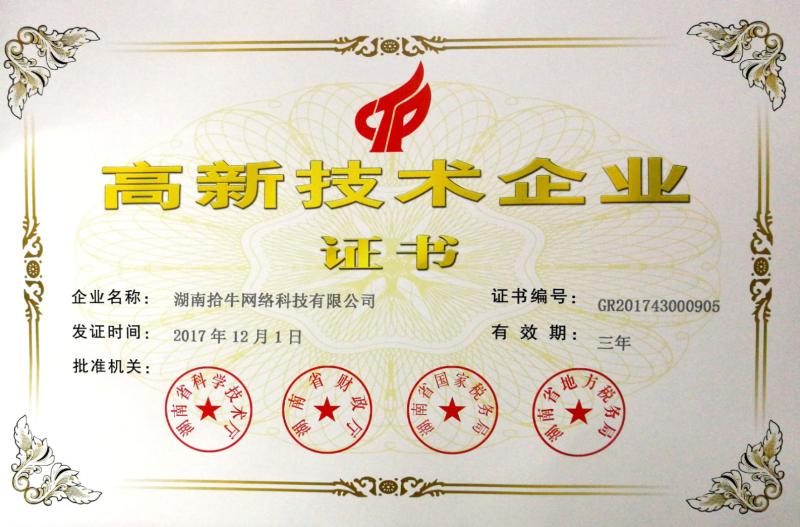 喜訊!拾牛網(wǎng)絡(luò )榮獲得高新技術(shù)企業(yè)認定