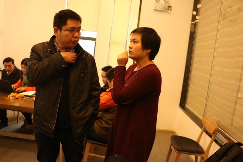 拾牛網(wǎng)絡(luò )公司CEO劉憲鋒導師在和競網(wǎng)智贏(yíng)陳花討論學(xué)員情況。